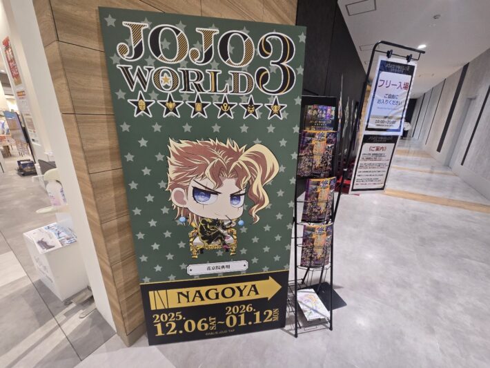 去年のブログで『JOJO WORLD Quizzes(ジョジョワールドクイズィース)』の感想をご紹介しましたが、今回は2025年12月6日~2026年1月12日にイオンモールNagoya Noritake Gardenにて開催された『JOJO WORLD3』に行ってきました。