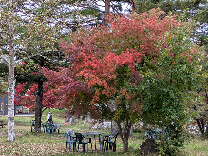 そのあとは、ところどころ紅葉している木々を眺めながら、お茶もしました。