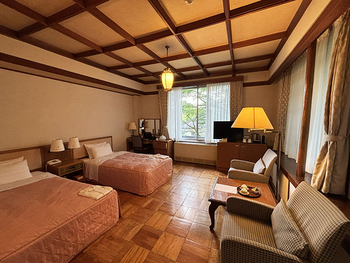 日本の建築美に西洋の家具や備品が溶け込み、クラシックホテルならではの雰囲気が漂います。