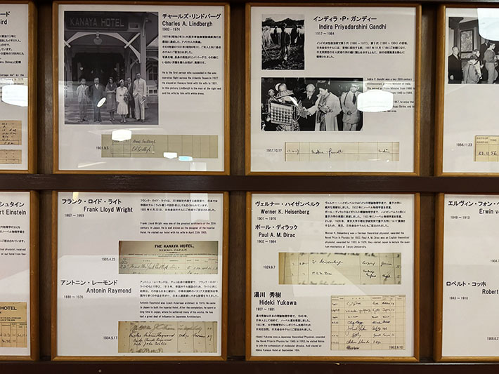 ⑫古い調度品、宿泊した著名人のサイン(アインシュタイン・リンドバーグ夫妻・ヘレンケラー等)や写真が展示されて
