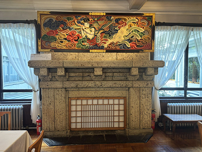 彫刻コレクションとして、メインダイニングの暖炉の上に⑬迦陵頻伽(かりょうびんか)があります。
