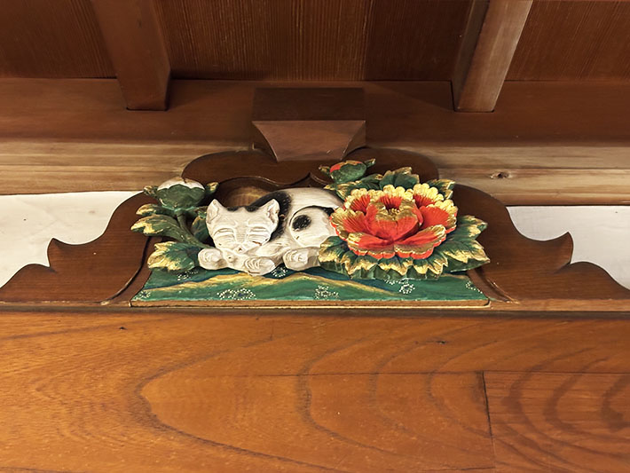 神社仏閣で目にするような彫刻が目立ちます。